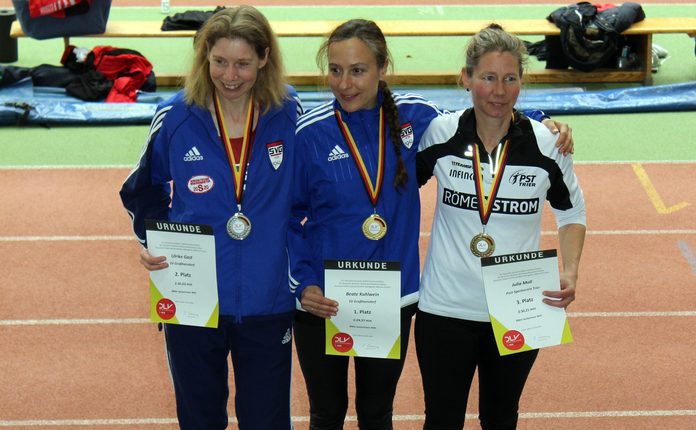 Erfurt – Bei den Deutschen Hallen-Leichtathletik-Meisterschaften der Senioren am vergangenen Wochenende in Erfurt haben zwei Läuferinnen des SV Großhansdorf die Läufer über 400 m und 800 m in der Altersklasse W45 dominiert. Zunächst siegte Beate Kuhlwein am Sonnabend über 800 m in 2:29,37 Minuten vor ihrer Vereinskollegin Ulrike Gast (2:30,02), am Sonntag drehte Ulrike Gast über 400 m den Spieß um, gewann in 64,28 Sekunden mit 38 Hundertstelsekunden Vorsprung.