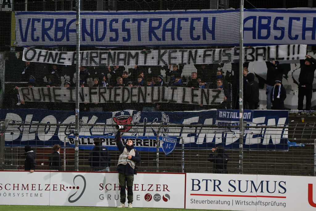 Nach einer Schweigeminute für den verstorbenen VfB-Zeugwart Uli Lenz, den auch die Gäste-Fans mit einem Banner ehrten, ging es los. Schon in der 2. Minute hatte der Gastgeber die erste Chance, als ein direkter Freistoß von Mikail Polat nur knapp am rechten Kreuzeck vorbeizischte. Der VfB setzte die Gäste von Anfang an unter Druck, kassierte aber mit dem ersten richtigen Angriff von Kickers Emden in der 11. Minute den 0:1-Rückstand. Eine Flanke von Bent Andresen nahm Tido Steffens volley und traf unhaltbar für Keeper Phillip Diestel ins lange Eck. Danach übernahmen die Gäste immer mehr die Kontrolle und kamen nach einem Eckball per Kopfball durch Felix Göttlicher zum 2:0 (21.). Die Grün-Weißen hatten Probleme, sich überhaupt Chancen zu erarbeiten, entwickelten kaum Durchschlagskraft. Mehr als ein, zwei zaghafte Schussversuche von Antonio Verinac kamen nicht heraus. Das änderte sich in der Nachspielzeit. Per Kopfball erzielte er im Anschluss an einen Eckball den Anschlusstreffer (48.). Kurz danach ging es in die Pause.