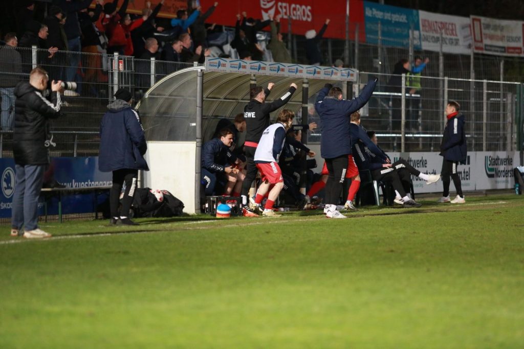 Jubel bei Eintracht Norderstedt nach dem späten Ausgleich. Foto: Lobeca/Andreas Knothe