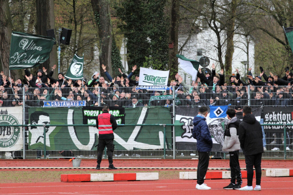 Die 300 mitgereisten Fans feierten mit ihrer Mannschaft und blieben rund um das Spiel ruhig. Im Vorfeld gab es eine Demonstration, da sie erst ausgeschlossen werden sollten (HL-SPORTS berichtete). Mehr zum Spiel und die Stimmen am Sonntagfrüh.
