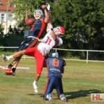 Foto: Caro Engel – GFL2: Rostock Griffins – Lübeck Cougars: Laurents Mohr (Cougars) beim Paßfang.