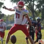 Foto: Caro Engel – GFL2: Rostock Griffins – Lübeck Cougars: Jamie Dale (Cougars) mit Ball.