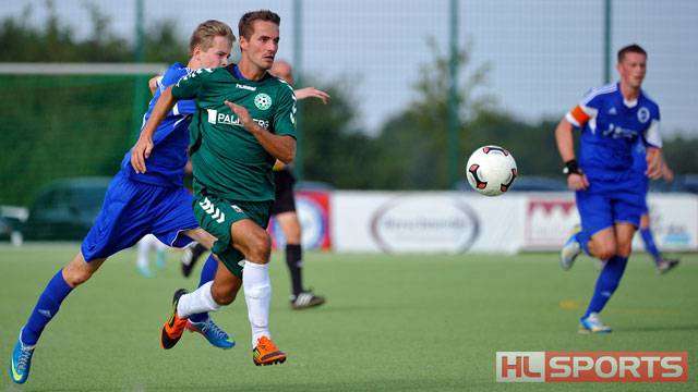 Foto: Christoph Kugel – SH-Liga: Husumer SV – VfB-Lübeck: Henrik Sirmais (VfB) schießt an Finn-Hübner (Husumer SV) vorbei.