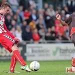 Foto: Christoph Kugel – Regionalliga Nord: SV Eichede – FC St. Pauli II: Arnold Lechler (SVE) erzielt das Tor zum 3:1. Alkan Tunca (St. Pauli) ist geschlagen.