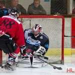 Foto: Nina Cathrin Sulzer – Oberliga Nord: EHCT 06 – Rostocker EC: Andre Gerartz vor dem Rostocker Torhüter.