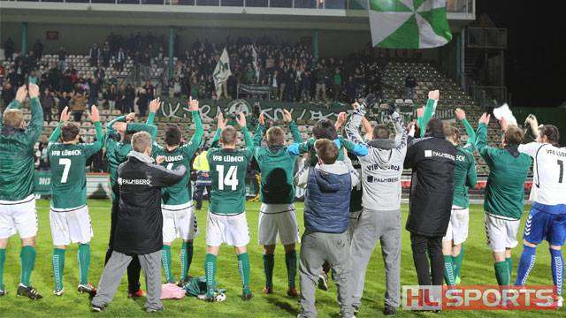 Foto: Christoph Kugel - SH-Liga: VfB Lübeck - NTSV Strand 08: Spieler und Fans des VfB Lübeck feiern gemeinsam den Sieg Foto: Christoph Kugel – SH-Liga: VfB Lübeck – NTSV Strand 08: Spieler und Fans des VfB Lübeck feiern gemeinsam den Sieg Foto: Jens Offen – K1 Warriors: HL-SPORTS Gewinner Jens Offen (re) mit Bartholomaeus Sznabel auf der Tribüne Foto: Rene Ewert – Kreisliga: RW Moisling II – SC Rapid: Bartholomaeus Sznabel verwandelt einen Strafstoss zum 0:1 Foto: Rene Ewert – Kreisliga: RW Moisling II – SC Rapid: Mark Reimers blockt Dennis Muessig - Anzeige -