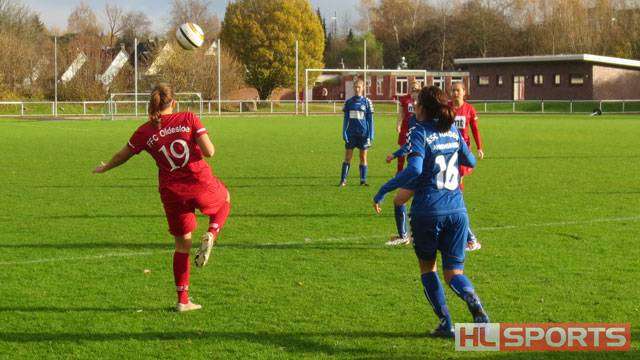 Fussball: SH-Liga Frauen: FFC Oldesloe – SSC Hagen Ahrensburg: Svea Catharina Sievers (FFC) behauptet den Ball