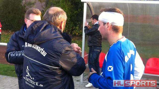 Fussball: Kreisliga: SC Rapid – VfL Bad Schwartau: Jan Schladetsch (VfL) wird nach einer Kopfwunde versorgt