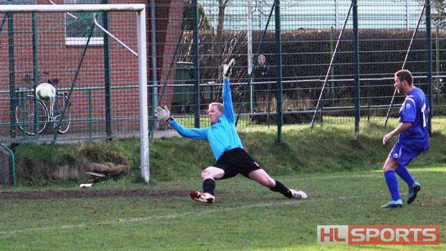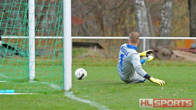 Foto: Rene Ewert – Bartholomaeus Sznabel (SCR) bei seinem Elfmetertor zum 2:0 gegen Marcel Hackert im Tor von Fortuna St. Jürgen