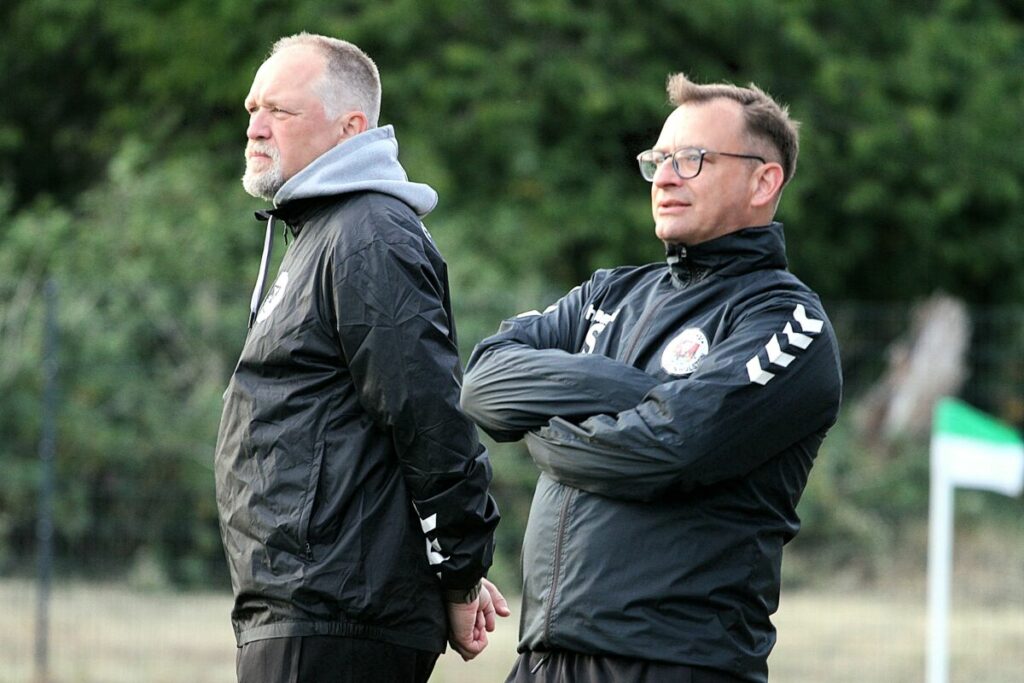 Trainer Volker Brand (l.) und Co-Trainer Jörg Schaumann (r.) riefen zum Neuanfang im Sommer aus. Foto: Niklas Runne