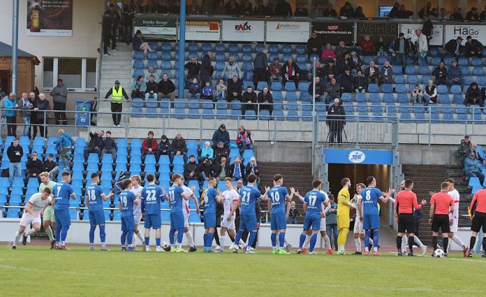 Auch nach dem Seitenwechsel hatten beide Teams ihre guten Phasen, aber glasklare Torchancen gab es nicht, die etwas besseren lagen sogar auf der Seite der Hansestädter. Als sich schon alle mit der erneuten Punkteteilung abgefunden hatten (bereits im Hinspiel gab es ein 1:1 zwischen beiden Vereinen), gab es in der 94. Minute noch einmal eine Ecke für die TSG. Der eingewechselte Remmy Jason Orlando Kruse führte sie aus und Luis Inderwisch kam per Kopf zum Erfolg. Unbeschreiblicher Jubel auf dem Platz und auf den Rängen, es war wie eine Erlösung. Das ganze Gegenteil natürlich bei der Ankerelf, die mit hängenden Köpfen den Platz verließ.
