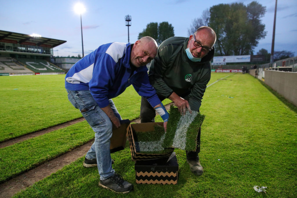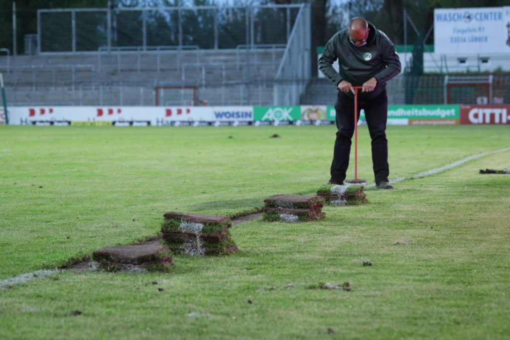 Der alte Rasen des Stadions an der Lohmühle wurde abgetragen und wird nun in Boxen an Fans verkauft. Foto: Fishing4/Marcel Krause