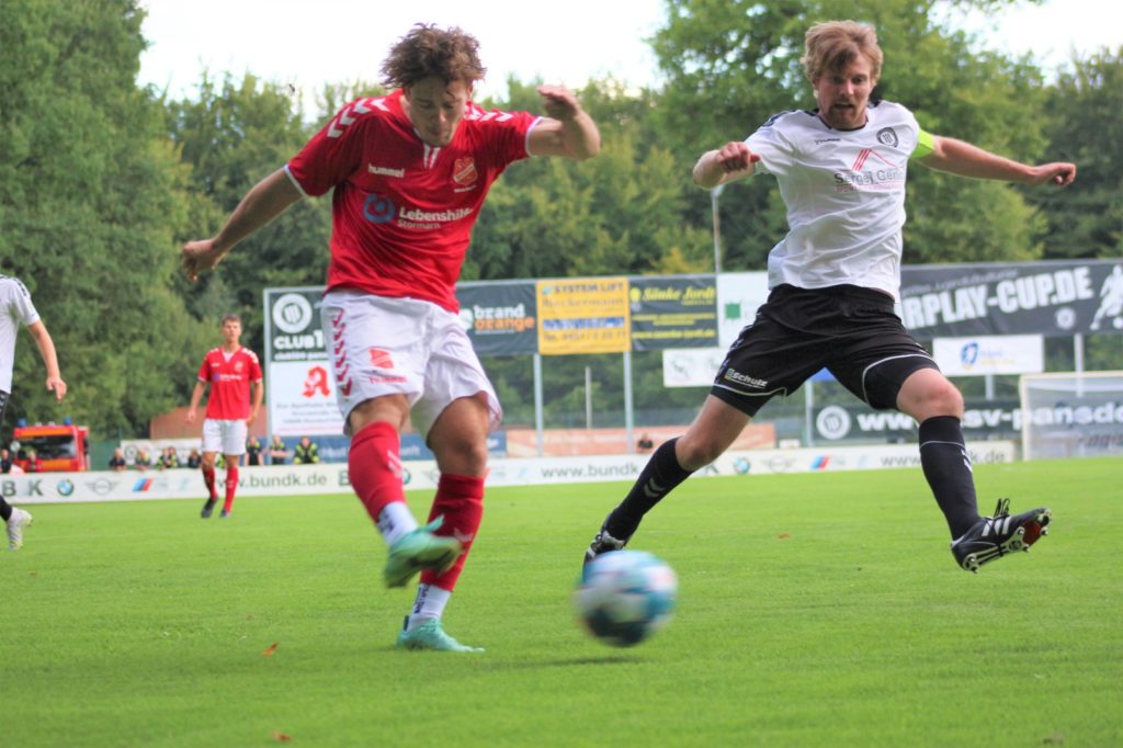 Tino Arp (SV Eichede) gegen Hauke Schult (TSV Pansdorf). Foto: Lobeca/Andreas Knothe