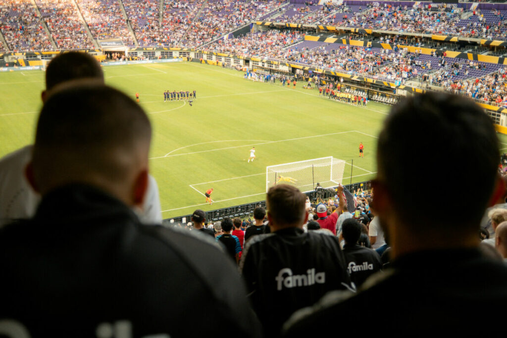 Am Abend stand dann das Highlight des Tages auf dem Programm: Der Besuch im U.S. Bank Stadium. Dort sahen die Kieler gleich zwei Viertelfinals des Gold-Cups. Nachdem man die letzten Minuten der Begegnung Kanada vs. Guatemala (Endstand: 6:5-Sieg für Guatemala nach Elfmeterschießen) noch sah, begann eine halbe Stunde später das Duell zwischen den USA und Costa Rica. Mit 30.000 anderen Zuschauern vorort sahen die Störche zu, wie Teamkollege John Tolkin die zwischenzeitliche Entscheidung vom Punkt auf dem Fuß hatte – und vergab. Köln-Profi Damion Downs brachte kurze Zeit später dann doch die Entscheidung. Das Team der USA um Tolkin entschied nach einem 2:2 in der regulären Spielzeit das Elfmeterschießen für sich – und zog somit ins Halbfinale ein.