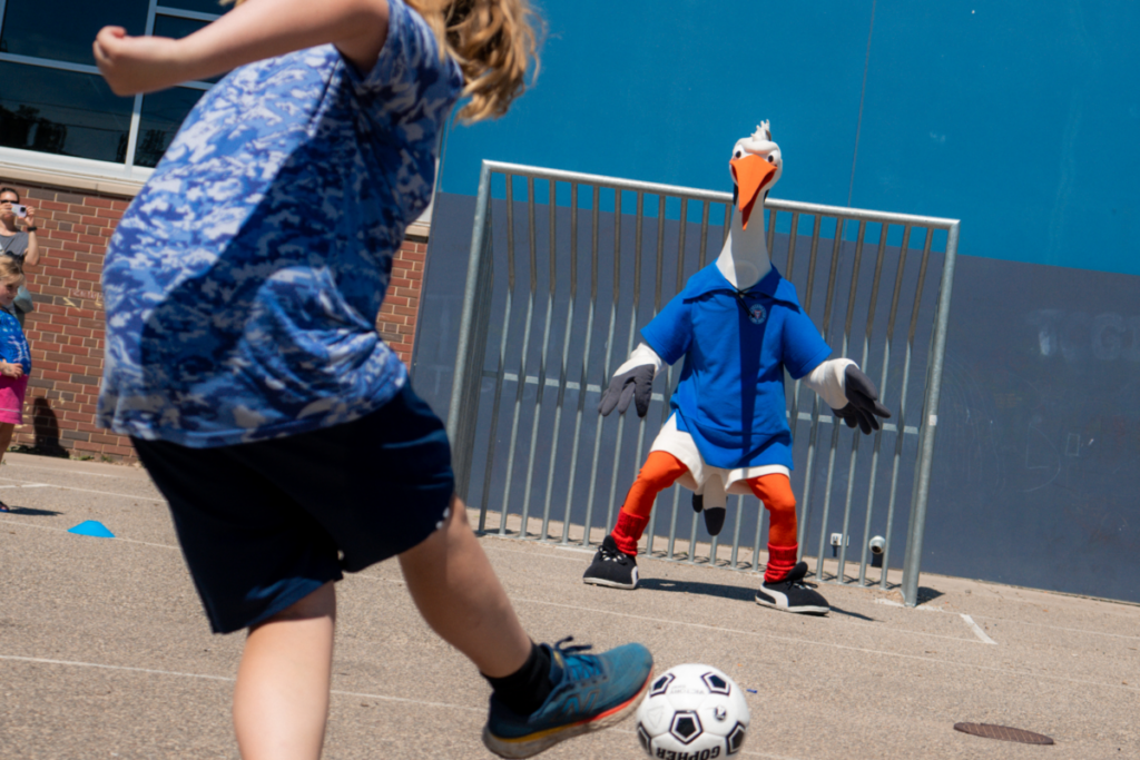 Parallel dazu besuchten mit Patrick Erras, Andu Kelati und Marco Komenda drei Spieler der KSV gemeinsam mit Athletiktrainer Timm Sörensen die Twin Cities German Immersion School im nahegelegenen St. Paul. Dort hatten sie gemeinsam mit mehreren Nachwuchstrainern des Minnesota United FC ein abwechslungsreiches Trainingsprogramm für die anwesenden knapp 100 Schüler vorbereitet. Auch Tyler Dogan, Louis Köster, Luca Prasse und Lio Rothenhagen stießen etwas später noch dazu. Innenverteidiger Erras fand Gefallen an der Veranstaltung: „Die Kinder waren sehr motiviert und hatten viel Freude am Fußball. Wir haben versucht, ihnen einiges beizubringen, und hatten gemeinsam viel Spaß. Es war eine super Aktion für alle.“