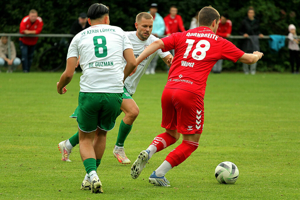 Lübeck – Eine große Überraschung im Achtelfinale des Kreispokals Lübeck ist geglückt. Der SV Azadi Lübeck hat den Oberligisten FC Dornbreite Lübeck mit 3:2 aus dem Pokal geschmissen. Zur Halbzeit führte der Favorit noch mit 1:0 durch einen Schuss aus der zweiten Reihe von Alaa Nader. Azadi hatte bis dahin zwar wie der FCD Torchancen, münzte diese allerdings nicht in Tore um. Nach der Pause kam der Verbandsligist gestärkt auf den Platz zurück und Dornbreite wachte zu spät erst so richtig auf. Die Heimmannschaft drehte das Ergebnis auf 3:1. Die Treffer erzielten Sahid Wahab, Jermaine Jenaro de Guzman und Ramazan Acer. Der Anschlusstreffer zum 2:3 kam zu spät, um noch das Elfmeterschießen zu forcieren. Damit ist für den Vorjahresgewinner bereits früh Schluss. Für Azadi hingegen steht im Viertelfinale Groß Grönau vor der Brust.