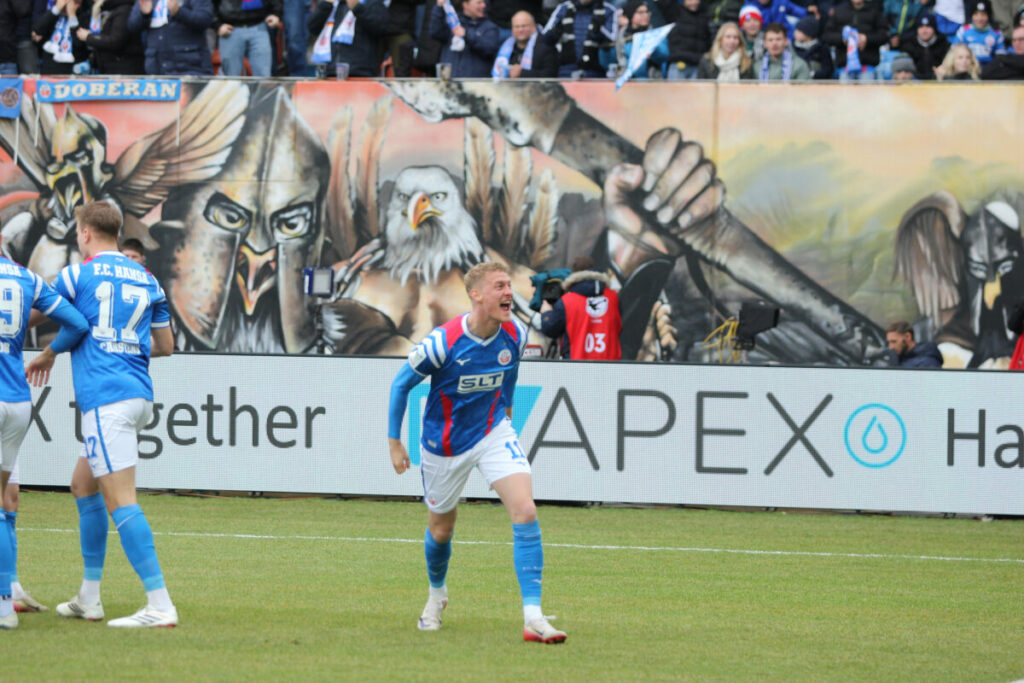 Jubel bei Emil Frost Holten (F.C. Hansa Rostock) nach dem Tor. Foto: Lobeca/Andreas Knothe