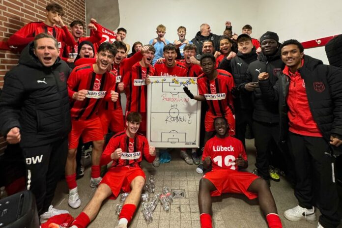 Lübeck – „Bundesliga wir kommen“ – diese Worte zierten die Taktiktafel der A-Junioren des JFV Lübeck nach dem gewonnen Spiel in der Regionalliga in Borgfeld. Denn der Sieg bedeutete die Herbstmeisterschaft und damit den Aufstieg in die U19 DFB-Nachwuchsliga. Die U15 des VfB Lübeck musste derweil im Schleswig-Holstein-Pokal ran und ließ dem Gegner keine Chance.
