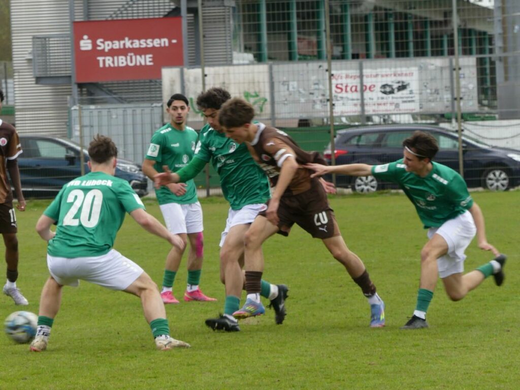 Lübeck – Die U17 des VfB Lübeck ist die einzige Mannschaft in der Nachwuchsliga, die den Tabellenführer FC St. Pauli besiegte. Am vergangenen Wochenende gelang den Grün-Weißen das Kunststück zum zweiten Mal in dieser Saison. Die Jungs von der Lohmühle waren griffiger und bissiger und holten sich einen verdienten 4:0 (1.0)-Sieg.