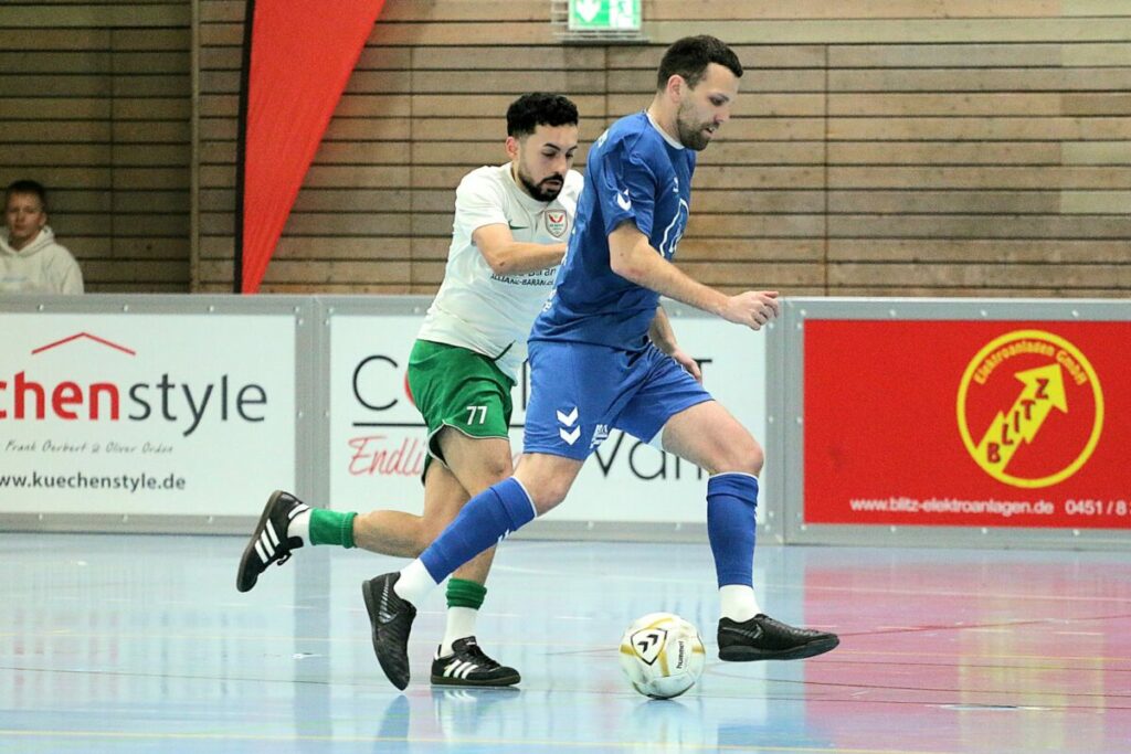 Gruppe B begann mit einer torarmen Partie, in der sich Eutin 08 knapp mit 1:0 gegen den Eichholzer SV durchsetzte. Der VfB Lübeck II und Preußen Reinfeld machten es in der Folge besser und trennten sich 3:3. es sollte übrigens der einzige Punkt im Turnier der Grün-Weißen werden, die absolut unter ihren Möglichkeiten auftraten. Auch die zweite Begegnung verlor der ESV. Diesmal mit 1:3 gegen den SC Rapid, der einen starken Start erwischte. Eutin machte entschlossen weiter und bezwang den VfB II mit 3:1 und auch Rapid feierte einen 5:1-Kantersieg gegen Preußen. Durch das 4:1 der Jungs auseichenholz gegen die Regionalliga-Reserve und die Niederlage der 08er gegen Reinfeld, hatten Preußen und der ESV noch Chancen auf das Top-Four. Rapid gewann erneut 5:1 gegen das Team von der Lohmühle und das Team rund um Yasin Varol bezwang Reinfeld mit 6:3. Sollte Rapid nun Eutin 08 schlagen, stünde Eichholz ebenfalls im Semi-Finale. So kam es und sowohl Rapid, als auch die Jungs von der Guerickestraße durften jubeln.