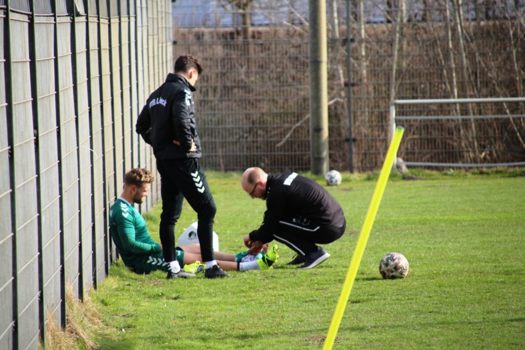 Lübeck – Am heutigen Nachmittag trainierte Drittligist VfB Lübeck an der Lohmühle. Zum Start hatte Cheftrainer Rolf Martin Landerl 24 Mann zur Verfügung. Mit voller Stärke wurde die Einheit allerdings nicht beendet. Der Grund: Yannick Deichmann verletzte sich nach einer Dreiviertelstunde in einem Zweikampf mit Ryan Malone, musste sofort aufhören, humpelte vom Geläuf und musste zeitnah auch neben dem Platz schon behandelt werden.