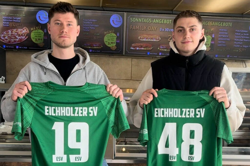 Lübeck – Die Abwehrspieler in der Landesliga müssen sich in der kommenden Saison etwas mehr Sorgen machen, wenn es gegen den Eichholzer SV geht. Das Team von Sebastian Wenchel und Rene Sternberg bekommt Verstärkung, richtige Verstärkung. Tino Arp und Vico Dombrowski schnüren die Schuhe ab Sommer am Pöbelberg. Das drang schon am Vormittag durch, der Verein bestätigte das kurz danach.