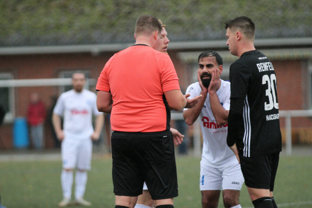 Das Topspiel des Wochenendes stieg am Sonnabend an der Krummesser Landstraße. Die SG Reinfeld/Kronsforde empfing den TSV Schlutup. Beides sind die Topkandidaten auf den Aufstieg, sodass mit Spannung auf diese Partie geblickt wurde. Reinfeld war favorisiert, denn nach dem zwölften Sieg im zwölften Spiel krönte man sich bereits vorzeitig zum Herbstmeister. Schlutup ließ bereits zu viele Punkte liegen, sodass es wohl eher um den zweiten Platz gehen würde. Dennoch nahm sich die Mannschaft von Tim Kreutzfeldt einiges vor, denn sie wollten als erstes überhaupt dem Tabellenführer Punkte klauen. Personell war Mert Büyükdemir fraglich, doch der beste Torschütze des TSV schaffte es in die Startelf. Auf der Gegenseite fehlten erneut Bäßler, Lie und Mickeleit, sodass man personell etwas geschwächt war. Mit Hauke Schult, Sami Yussef und Emilio Krück starteten drei Kicker aus dem Oberliga-Kader. Der Druck lag bei der Gastmannschaft, sodass man früh presste. Mit drei Stürmern griffen die Schlutuper an. Nach knapp einer Viertelstunde gab es dann allerdings einen herben Dämpfer. Homan Alkhuby sah für eine Beleidigung die Rote Karte. Es sollte nicht einfacher werden für die Gäste, die kurz darauf großes Glück hatten. Hackbarth traf die Latte, zudem verpasste Schult frei vor dem Tor. Der Führungstreffer lag in der Luft und zehn Minuten vor der Pause fiel dieser. Marcel Dankert (35.) lief Leon Staniec davon und traf zur Reinfelder Führung. Diese war verdient, denn die Gastgeber hatten das Geschehen komplett im Griff. Wenige Minuten nach dem Gegentor sollte es dann eine Schlüsselszene geben. Stürmer Büyükdemir holte mit dem Bein aus, dabei war der Ball bereits weg. Der Schiedsrichter wertete dies als ein versuchtes Nachtreten, sodass auch der Torjäger vorzeitig vom Feld musste. Die Gäste waren alles andere als einverstanden mit dieser Entscheidung. Über 50 Minuten sollte es also ein Elf-gegen-Neun werden, sodass nicht mehr viel für den TSV sprach.