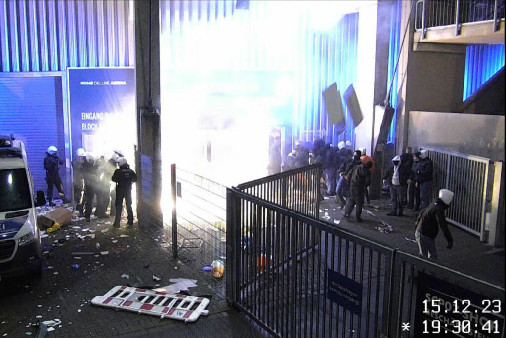 Bei den schweren Ausschreitungen an denen etwa 150 Anhänger des F.C. Hansa Rostock beteiligt waren, wurden 24 Polizeibeamtinnen und -beamte sowie 13 Ordnungskräfte durch einen massiven Bewurf mit verschiedensten Gegenständen und Pyrotechnik verletzt. Eine Polizistin musste mit einer Schnittwunde im Krankenhaus behandelt werden. Hinzu kamen Sachbeschädigungen an Einsatzwagen und -mitteln der Polizei sowie im und am Stadion. Unter anderem wurden durch die Randalierer die Scanner im Kontrollbereich des Gästeeingangs zerstört und ein WC in Brand gesetzt. Der Gesamtschaden beläuft sich auf rund 250.000 Euro.