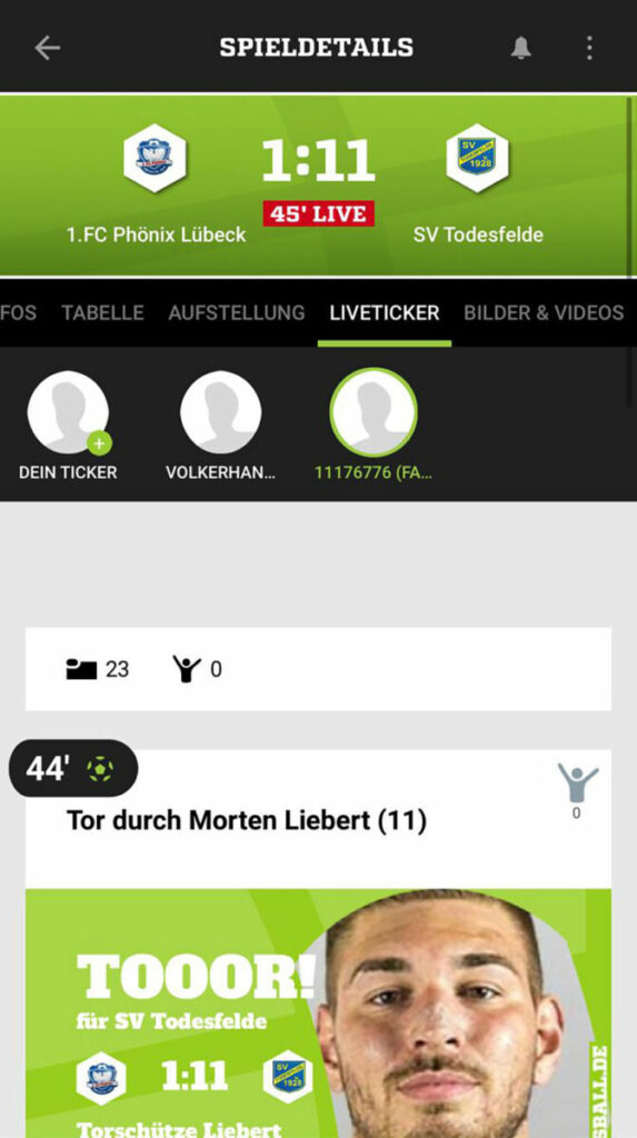 SV Todesfelde führte laut Liveticker zur Pause mit 11:1 bei Phönix Lübeck