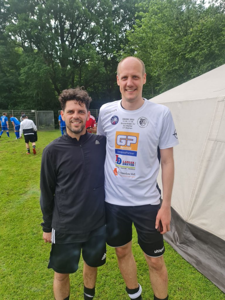 Premiere beim Supercup und gleich zwei Siege zum Auftakt für den FC Dornbreite. Der Gruppensieg ist zum Greifen nah. Dazu reicht am heutigen Sonnabend (11.6.) ein Unentschieden gegen TuS Leimen. Andre Venzke meint bei HL-SPORTS: „Erfolgreicher erster Tag für unsere Truppe. Erstes Spiel verdient gegen Weimar 2:0 gewonnen. Im zweiten Spiel wurden wir dann schon das erste Mal richtig gefordert. Gegen spielfreudige Sportsfreunde aus Oberneuland mussten wir richtig gut verteidigen, bis wir dann kurz vor Schluss einen Konter zum 1:0-Sieg einfahren konnten. Jetzt genießen wir erstmal den erfolgreichen Turnierstart bei ein paar Kaltgetränken und lauschen später der Musik von Mickie Krause.“