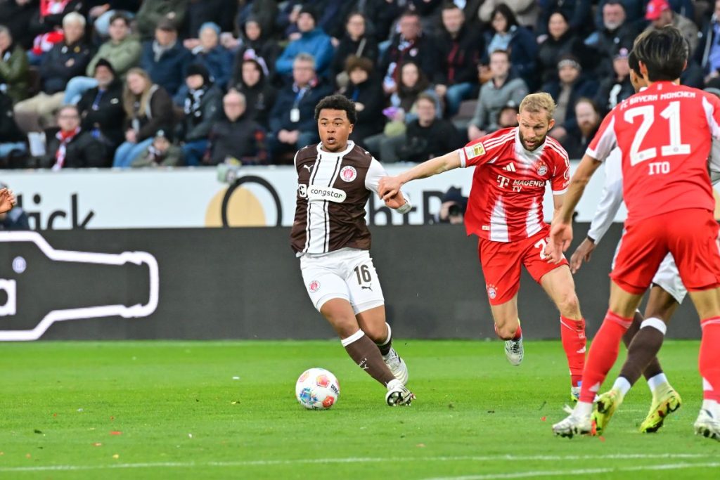 Für den FC St. Pauli war gegen den FC Bayern München von Beginn an Schwerstarbeit angesagt. Die Gäste übernahmen früh die Kontrolle und gingen bereits in der 9. Minute durch Jamal Musiala in Führung. St. Pauli hatte große Probleme, sich aus dem hohen Pressing der Bayern zu befreien, verteidigte aber mit viel Einsatz und hielt die Partie zunächst offen. Ein abgefälschter Schuss von Jackson an die Latte sowie ein weiterer Abschluss von Olise hätten früh für eine höhere Führung sorgen können. Dennoch bot sich den Kiezkickern die große Chance auf den Ausgleich, doch Kim klärte entscheidend gegen Pereira Lage (30.). So ging es mit einem knappen 0:1 in die Pause – ein Ergebnis, das für St. Pauli durchaus Hoffnung ließ.