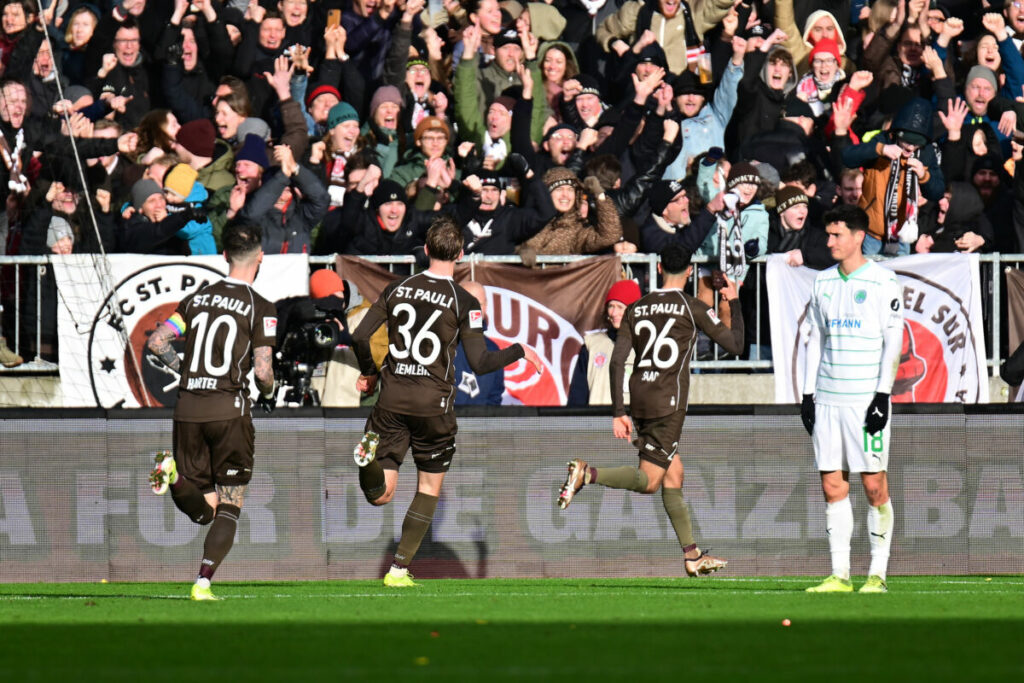 Hamburg – Am 20. Spieltag der 2. Bundesliga ging es am Millerntor heiß her. Der Spitzenreiter empfing den Tabellenzweiten. Am Ende setzte sich der FC St. Pauli mit 3:2 (2:1) gegen Greuther Fürth durch und baute den Abstand auf die Verfolger weiter aus. Die Ungeschlagen-Serie der Franken riss damit, die von St. Pauli bleibt weiterhin bestehen. Die Kiezkicker gaben mit dem Sieg über das Kleeblatt ihrem Stadtnachbarn, dem Hamburger SV, die Möglichkeit mit einem Erfolg bei der Hertha auf Rang zwei zu klettern.