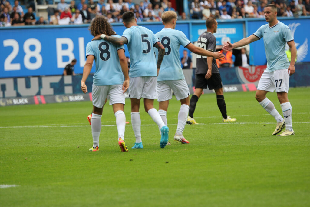Anlässlich des 70. Geburtstags des Rostocker Ostseestadions fand diese Begegnung statt und hatte mit 21200 Zuschauern einen würdigen Rahmen gefunden. Die Gastgeber von Trainer Bernd Hollerbach versuchten in der Anfangsphase auf den Führungstreffer zu drängen, doch Kapitän Damian Roßbach verpasste diese, als er nach einem Freistoß den Ball knapp verpasste. Nur fünf Minuten später hatte Kevin Schumacher die große Chance zur Führung, doch sein Volleyschuss ging knapp am Kasten der Römer vorbei. In der Folgezeit wurden die himmelblauen Italiener stärker und gingen in der letzten Minute der ersten Halbzeit in Führung, als Mattia Zaccagni einen Abpraller per Kopf im Rostocker Tor unterbrachte.