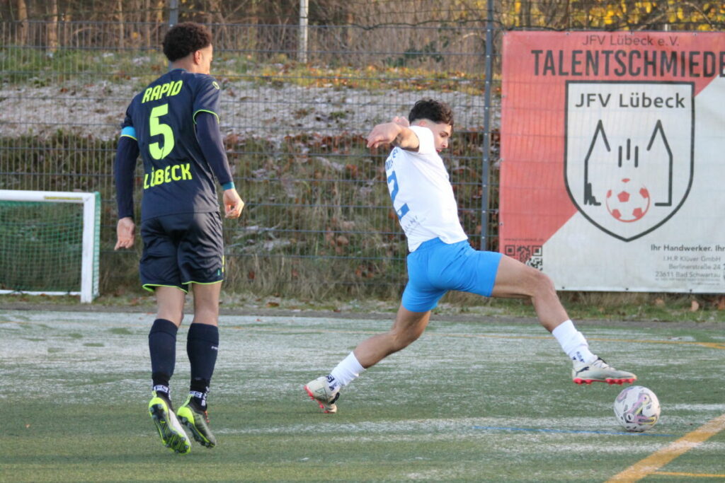 Lübeck – Ein turbulentes Derby lieferten sich Phönix Lübeck II und Rapid Lübeck in der Landesliga Holstein am Sonnabend. Das Spiel endete zwar torlos 0:0, doch nach der Begegnung ging es heiß her. Erst sah es nach einem überraschenden Punkt für Rapid aus, doch nach Abpfiff war schnell klar, dass Einspruch gegen die Wertung eingelegt werden würde. Bevor es dazu kam, wurde es auf dem Rasen jedoch handgreiflich. Ein Ex-Phönixer auf Seiten von Rapid freute sich über das Remis und lächelte in Richtung eines Offiziellen der Adler. Daraufhin kam es zu einer Unruhe zwischen den jeweiligen Spielern und dem Offiziellen und womöglich zu einer Backpfeife an den eben erwähnten Rapid-Spieler, die die Gemüter noch mehr erhitzte. Der Offizielle war nicht mehr zu halten und stürmte immer wieder auf die Spieler zu. Nach einiger Zeit beruhigte sich die Situation. Polizei wurde nicht hinzugezogen. Auf dem Parkplatz kam es zu einem Austausch beider Parteien. Eins steht jedoch fest. Der Protest von Rapid wurde bereits eingelegt. Bei Phönix kamen mit Emanuel Adou, Yevhenii Obushnyi und Hamissou Hassan Ali drei Spieler zum Einsatz, die unter der Woche noch in der Regionalliga Nord gegen Werder Bremen II gespielt haben. Da das Spiel der 1. Mannschaft an diesem Wochenende jedoch abgesagt wurde, sind die drei Akteure nicht für die zweite Mannschaft spielberechtigt, obwohl sie alle das 23. Lebensjahr noch nicht überschritten haben. „Kommt es an einem Spieltag zu einem Spielausfall wegen Spielverlegung, so darf von den eingesetzten Spielern des letzten durchgeführten ordentlichen Pflichtspiels der höheren Mannschaft kein Spieler in einer niederen Mannschaft des Vereins eingesetzt werden.“ So dachte man zumindest auf Seiten von Rapid und hoffte auf einen positiven Ausgang gegen den Tabellenzweiten und auf einen wichtigen Dreier gegen die Abstiegsplätze. Allerdings wurden die Paragraphen nur überarbeitet in den vergangenen Monaten und nicht komplett gestrichen, weshalb sie nicht nur für Verantwortliche, sondern auch für Außenstehende unüberschaubar wirken. Doch drei Spieler, die zum 1. Juli 2024 das 23. Lebensjahr noch nicht überschritten haben, dürfen in der 2. Mannschaft aushelfen, auch bei einem Spielausfall. Somit wird der Einspruch voraussichtlich nicht gestattet werden und es bliebe demnach beim 0:0.