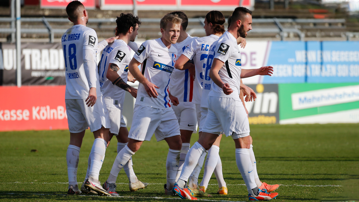 Die Partie begann mit viel Druck der Gastgeber, die eine Reihe guter Möglichkeiten zur Führung vergaben. Mit zunehmender Spielzeit befreite Hansa sich und gestaltete das Spiel ausgeglichener. Kurz vor dem Pausenpfiff fiel dann die Führung für die Kogge durch Farrona-Pulido, der eine Ecke von Bahn am zweiten Pfosten annahm und ihm im Kasten versenkte.