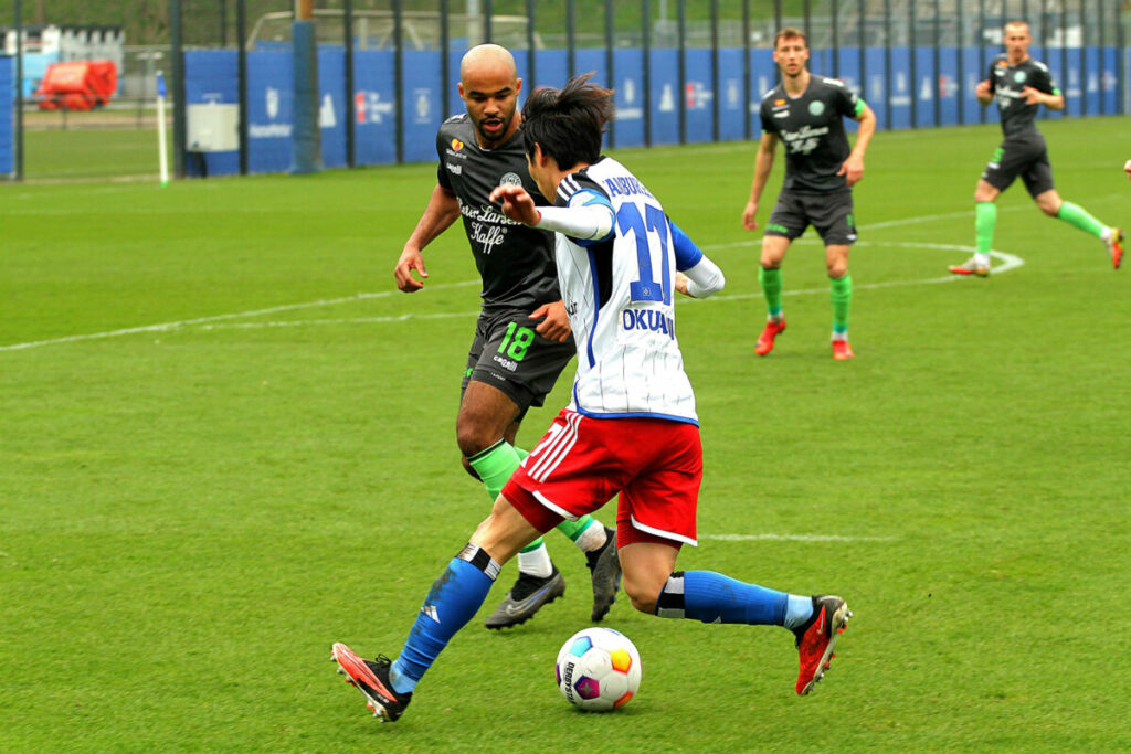 Im zweiten Durchgang fiel schnell der Ausgleich durch Lukasz Poreba (48.). Der Pole wurde von Okugawa bedient und schoss den Ball von der Strafraumgrenze ins linke untere Eck zum 1:1. Danach übernahm der HSV das Kommando, doch Chancen blieben Mangelware. Nach rund einer Stunde durften die nächsten Nachwuchskräfte mit Lukas Bornschein, Glory Kiveta und Tom Sanne ran. Der bereitete den Siegtreffer in der 82. Minute vor, als seine Schuss von Radic mit der Hand geblockt wurde. Schiri Jürgensen aus Norderstedt zeigte zum zweiten Mal an diesem Tag auf den Punkt und Bakery Jatta verwandelte den Strafstoß zum 2:1-Siegtor.