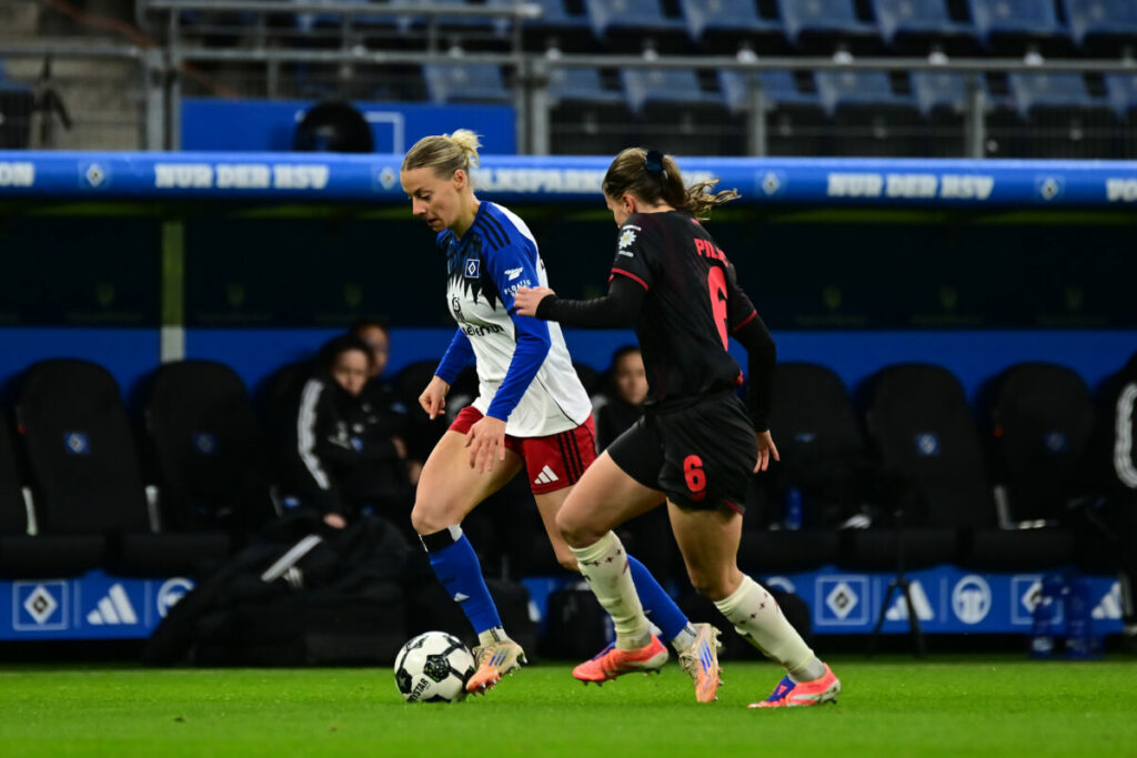 Beide Teams investierten in viel Laufarbeit, jedoch nur selten kam es zu zwingenden Torchancen. Leverkusen hatte zunächst mehr Ballbesitz, doch der HSV verteidigte stabil und wurde mit zunehmender Spielzeit mutiger. Nach einer guten Flanke von Eggert verpasste Hillebrand (37.) per Kopf die Führung der Gastgeberinnen. Auf der anderen Seite rauschte ein Distanzschuss von Fudalla (34.) knapp über die Latte. Mit einem leistungsgerechten 0:0 ging es in die Pause.