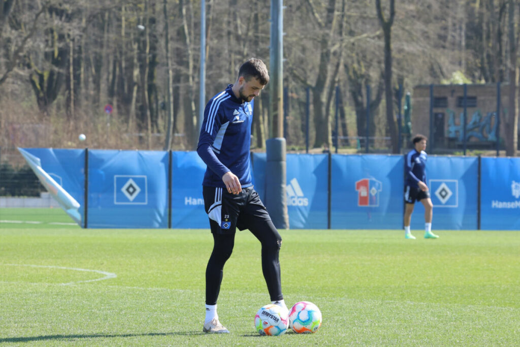 Beim Team von Tim Walter startete am Dienstag die Vorbereitung auf das große Saisonfinale. Jonas Meffert fehlte belastungsgesteuert im Training, ein Einsatz am Sonntag ist nicht in Gefahr. Aktueller Stand ist, dass der HSV-Coach bis auf die gesperrten Ludovit Reis (5. Gelbe Karte) und Bakery Jatta (Gelb-Rot-gesperrt) komplett auf seinen Kader zurückgreifen kann. Neu-Profi Elija Krahn (19) war dabei. Er unterschrieb in der Vorwoche einen Vertrag bis zum Sommer 2025. Und noch eine Verlängerung gab es: Adidas bleibt für weitere sechs Jahre Ausrüster der Rothosen. Der neue Kontrakt gilt bis 2029. Außerdem wird eine weitere gute Nachricht an der Sylvesterallee 7 ins Haus. Klaus-Michael Kühne wird wohl weiterhin die Namensrechte des Volksparkstadion halten.