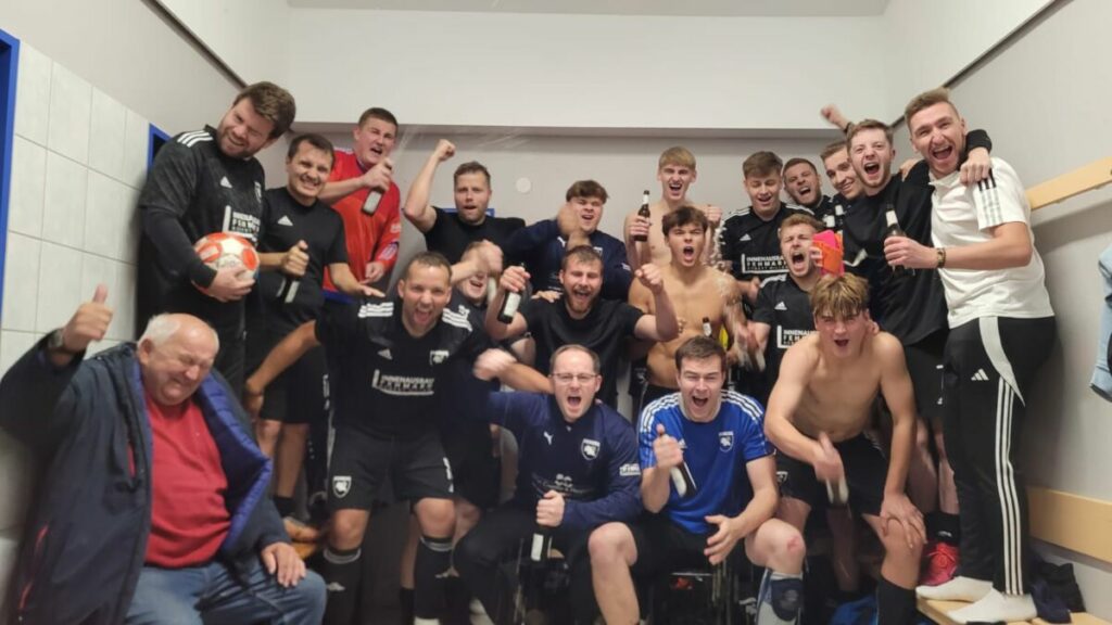 Die SG Insel Fehmarn setzte einen Achtungserfolg und feierte anschließend ausgelassen in der Kabine. Foto: SG Insel Fehmarn/o.H.