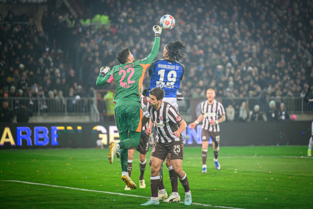 Nach der Pause präsentierten sich beide Mannschaften aktiver. Zunächst mussten sich allerdings alle Akteure warm halten, denn eine Pyro-Show verzögerte den Wiederanpfiff. Im Spielgeschehen angekommen hatte Vuskovic nach einer Ecke die bis dato größte Chance. Auf der anderen Seite war HSV-Kapitän zweimal stark zur Stelle. Capaldo grätschte haarscharf vor freistehenden Kiezkickern den Ball weg. Am Einsatz lag es weder bei den Kiezkicker, noch bei den Rothosen. Insgesamt machte St. Pauli in Halbzeit zwei den besseren Eindruck. Positiv für beide Seiten: Sowohl Glatzel, als auch Irvine bekamen Derby-Minuten – das sollte Mut für den restlichen Saisonverlauf machen. Zwar war die Partie intensiv und wurde von Fouls geprägt, Rudelbildungen oder weitere Karten blieben allerdings vorerst aus. Die größte Möglichkeit der Partie hatte Danel Sinani, der nach Einwechslung Heuer Fernandes aus der Distanz prüfte. Das tat auch Pyrka nur wenigen Sekunden danach. Die Hausherren wurden stärker, Hamburg hatte daraufhin eine Drei-Gegen-Eins-Situation, die katastrophal ausgespielt wurde. Das hätte eine Riesenchance sein müssen. In der Folge versuchte St. Pauli viel, ohne alles reinzuwerfen und der HSV wirkte mit dem Remis zufrieden. So endete das Spiel 0:0.