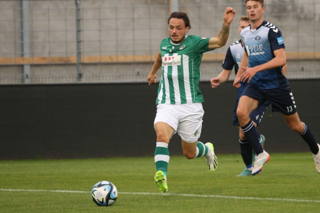 Robin Kölle (VfB Lübeck) im vorletzten Test gegen Oldenburg. Da war noch alles okay. Foto: Lobeca/Michael Raasch