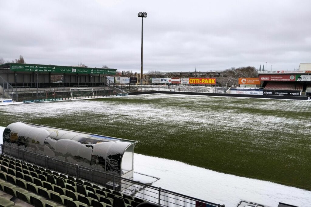 Bereits am Dienstag wandte sich der VfB Lübeck so an seine Anhänger und bat um Hilfe. Der Wortlaut: „Was soll`s, am Samstag gegen Mannheim soll natürlich trotzdem gespielt werden. Wir können dazu sehr gut jede Unterstützung gebrauchen. Wer also Zeit und Lust hat, kann gern ab sofort zu jeder Zeit zum Stadion kommen und uns helfen, Tribünen und gegebenenfalls Spielfeld von den Schneemassen zu befreien.“ Das Thema Spielfeld könnte sich erledigt haben, der Platz im Stadion (Foto) war am Dienstagnachmittag nur noch teilweise mit etwas Schnee bedeckt
