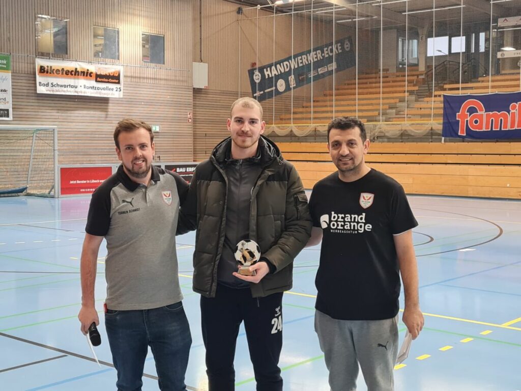 In der Gruppe A ging mit dem TSV Kücknitz ein Kreisligist ins Rennen. Folgerichtig gehörte ihnen auch die Favoritenrolle, doch die Konkurrenz sollte auf keinen Fall unterschätzt werden. Vor allem der Eichholzer SV II, als Tabellenführer in der A-Klasse sollte ein heißer Kandidat auf ein Weiterkommen sein. Doch auch das erste von zwei Teams des SV Azadi II war nicht zu unterschätzen. Klar war bereits im Vorfeld, dass es sehr eng werden würde, denn die Teams hatten alle Argumente für sich. Am Sonntagvormittag sollte sich dies dann zeigen. Eröffnet wurde das Turnier mit der Begegnung des SV Azadi A gegen den Eichholzer SV II. Es war ein Spitzenspiel, denn beide Teams belegen in der A-Klasse die Platzierungen Eins und Zwei. Draußen setzte sich der SVA mit 3:1 durch und in der Halle gingen die Punkte ebenfalls an den SVA. Es sollte es keine 60 Sekunden dauern, bis Schiedsrichter Hendrik Plambeck die erste Zeitstrafe aussprach. Eichholz stoppte den Gegner in höchster Not und musste folgerichtig für zwei Minuten zuschauen. Die Zweitvertretung von der Guerickestraße tat sich schwer und unterlag der A-Mannschaft von Azadi deutlich mit 0:3. Mit dem TSV Kücknitz stieg ein Team aus dem engeren Favoritenkreis ins Turnier ein. Der Kreisligist traf den TuS Lübeck und legte los wie die Feuerwehr. Nach wenigen Momenten stand es bereits 2:0. Doch der TuS zeigte sich gegen den Favoriten unbeeindruckt und drehte das Spiel. So gab es eine erste dicke Überraschung, denn der B-Klassist setzte sich durch. In der dritten Begegnung der Gruppe A stieg die SG VRB Concordia II ins Turnier ein. Gegner Azadi B machte die Sache schnell rund und stellte auf 3:0. Eine Rote Karte für ein unnötiges Nachtreten von Ceyhun Akcasu dezimierte die Spielgemeinschaft. Am Ende war es ein 4:1 des Veranstalters, der mit zwei souveränen Siegen ins Turnier startete. Mit dem Duell des TSV Kücknitz und Eichholz II, trafen die beiden Verlierer der ersten Spiele aufeinander. Der Druck war also schon da. Diesem hielt die Zweitvertretung aus Eichholz stand, sodass es ein deutliches 3:0 gab. Kücknitz war also bereits früh so gut wie raus. Dies galt auch für die SG VRB Concordia II, die im ersten Spiel nicht nur deutlich verlor, sondern auch eine Rotsperre für das ganze Turnier verkraften musste. Es sollte gegen den TUS Lübeck nicht einfacher werden, doch zumindest ein Punkt war zum Greifen nah. 14 Sekunden vor Ertönen der Schlusssirene gelang dem TuS dann doch der Siegtreffer zum 2:1-Sieg und den Punkten vier, fünf und sechs. Der SV Azadi A hatte das Weiterkommen in der eigenen Hand, denn nach zwei Siegen sollte der dritte gegen Kücknitz folgen. Auch hier deutete sich ein Remis an, doch mit Ablauf der Zeit gab es nochmal einen Siebenmeter für die Gastgeber. Mit der letzten Aktion fand dieser den Weg ins Tor zum 2:1-Sieg Azadi’s. Die SG VRB Concordia II nahm einen weiteren Anlauf für den ersten Sieg im Turnier, doch gegen Eichholz sollte es erneut nicht zählbares geben. Defensivfehler und Zeitstrafe prägten ihr Spiel, sodass es am Ende eine deutliche 1:4-Niederlage gab. Für Azadi A stand gegen 11.30 Uhr das letzte Gruppenspiel an. Der Gegner hieß TuS Lübeck, der mit zwei Siegen ins Turnier gestartet ist. Der B-Klassist ging in Führung, doch Azadi glich aus, sodass es keinen Sieger gab. Azadi setzte sich ungeschlagen durch und zog ins Halbfinale ein. Davon waren der TSV Kücknitz und die SG VRB Concordia II weit entfernt. Beide enttäuschten beim ersten Hallenturnier des Winters und beim direkten Duell trennten sie sich 1:0 für den Kreisligisten. Im letzten Vorrundenspiel der Gruppe A ging es dann nochmal um alles. TuS Lübeck traf auf Eichholz II und der Gewinner würde ins Halbfinale einziehen. Der ESV II startete gut und führte verdient. TuS kam allerdings zurück und traf mit der letzten Aktion des Spiels zum 3:2-Sieg. Es war das Halbfinalticket für den B-Klassisten und eine dicke Überraschung.