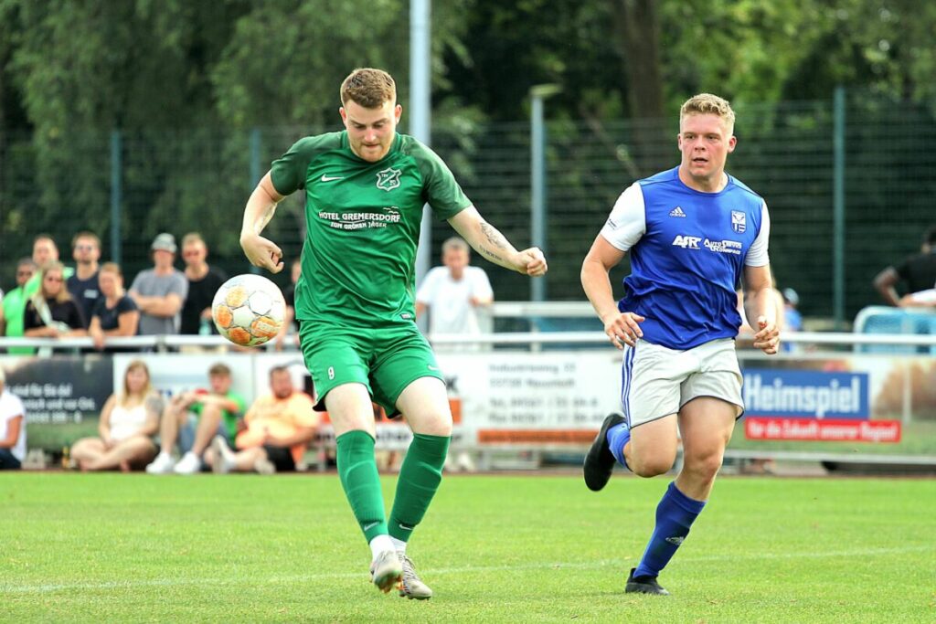 Der TSV Lensahn startete mit zwei Siegen in die neue Spielzeit und grüßte zwischenzeitlich von ganz oben. Mittlerweile ist man allerdings ziemlich schnell wieder in der Realität angekommen. Drei sieglose Partien sorgten für einen Fall ins Tabellenmittelfeld. Nach dem schwachen Start in der Vorsaison ist es wohl eher wenig dramatisch, dennoch wollte man den Negativtrend beenden und wieder in die Spur finden. Nun gastierte mit dem TSV Gremersdorf allerdings der Ligaprimus im Jahnstadion. Es sollte gegen eine spielstarke und torgefährliche Mannschaft erneut eine harte Aufgabe werden. Zuletzt gegen den ASV Dersau hielt man bis zur Schlussphase die Null, doch zerfiel dann doch. So gab es eine 0:4-Pleite. Die Herangehensweise bei den Gastgebern war klar. Tiefstehen, mit einer Fünferkette alles wegverteidigen und über lange Bälle, in Person von Finn-Ole Ratje umschalten. Dies ist das Spiel der Lensahner. Auf der anderen Seite kam eine Menge Offensivpower auf das Abwehrbollwerk zu. Die pfeilschnellen Maurice Wagner und Dustin Gabbey bildeten die Flügelzange, Marvin Zeiger ging auf die Zehn und als alleiniger Neuner agierte Phil Baumgarn. So wollte man Gefahr erzeugen und an den Kantersieg gegen Wadersee anknüpfen. Bereits früh suchte Gremersdorf den Weg in Richtung Tor, doch fand noch keine Lücken. So versuchte es Jonas Kock nach sechs Minuten mal aus der zweiten Reihe, doch sein Abschluss war leichte Beute für Lensahn-Schlussmann Sverre Kripke. Zwei Minuten später deuteten die Gastgeber erstmals an, wie es gehen kann. Ron Kruse verschätze sich und Finn-Ole Ratje war auf und davon, doch konnte noch eingeholt werden. Es war eine Anfangsphase, wie man es erwartet hatte. Gremersdorf war klar spielbestimmend und hatte deutliche Ballbesitzvorteile, doch fand noch nicht den Weg vors Tor. Erst nach einer knappen Viertelstunde, kam ein Chip vors Tor, doch Gabbey köpfte über das Gehäuse. Es waren bis dato eher Annäherungen als klare Chancen. Diese sollten nach der Trinkpause dann kommen. Wagner kam zum Abschluss, doch Kripke hielt stark. Drei Minuten später war es Gabbey, doch erneut war der Torhüter aus kurzer Distanz auf dem Posten. Gremersdorf wurde immer zwingender und gefährlicher, doch plötzlich kam Lensahn. Ein langer Ball zu Finn-Ole Ratje (36.), der den Ball fest macht, sich dreht und anschließend den Turbo zündete. Alleine vorm Tor schob er eiskalt ins lange Eck ein zur Führung. Es war ein typisches „Lensahn-Tor“ und der Schock für die Gäste. Es sollte nun nicht weniger unangenehm werden, denn jetzt lag der Fokus beim Gegner noch mehr aufs Verteidigen. Dennoch boten sich die Gelegenheiten. Zwei Minuten nach dem Treffer brachte Lennart Petersen eine Ecke von Rechts und Baumgarn köpfte den Ball ans Aluminium. Die erste Hälfte neigte sich dem Ende hin, dennoch gab es auf beiden Seiten nochmal eine gute Gelegenheit. Wagner verzog knapp, auf der anderen Seite war es erneut der auffälligste Lensahner, der allerdings noch gestoppt werden konnte. So ging es mit einem Rückstand aus Sicht des Tabellenführers in die Pause.