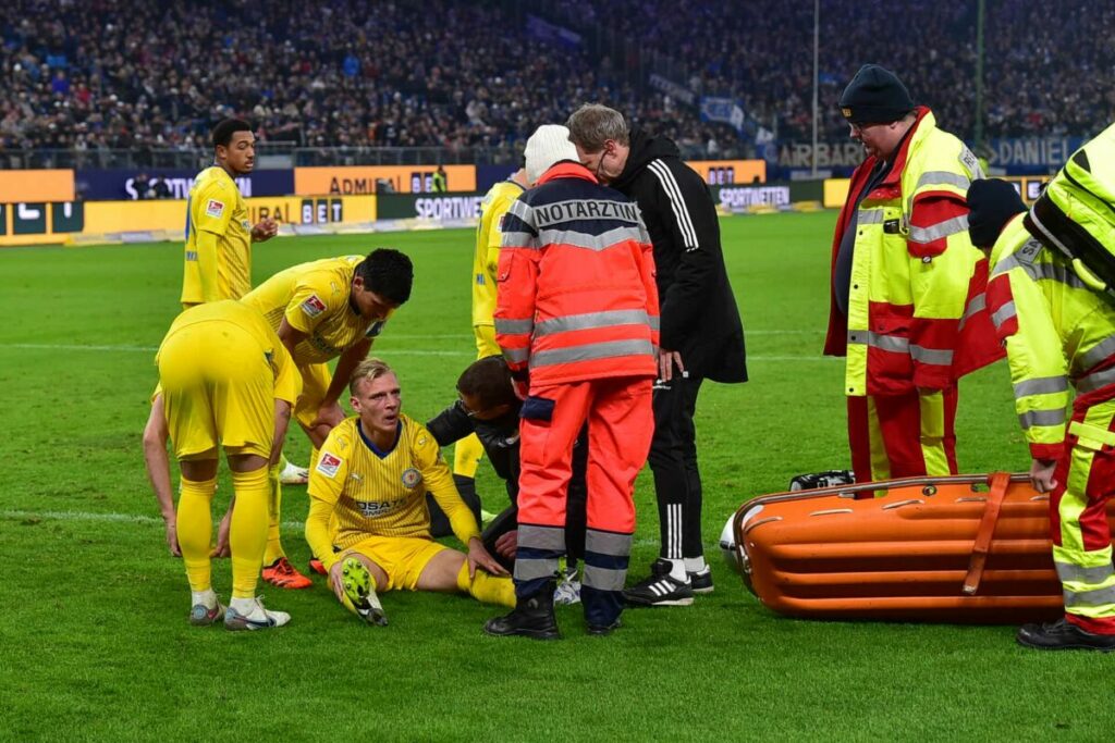 Wie schon in der ersten Hälfte war die Viertelstunde nach Wiederanpfiff ohne nennenswerte Situationen. Braunschweig verteidigte mit zehn Mann den 0:2-Rückstand am eigenen Strafraum und wurde von Hamburgs Abwehr wachgeküsst. Fabio Kaufmann (62.) zog einfach mal aus 20 Metern ab und traf ins rechte Eck durch Ramos und Muheim sowie Heuer Fernandes vorbei zum Anschlusstreffer. Fortan kippte die Partie, denn die Gäste übernahmen das Kommando. Sane scheiterte im nächsten Angriff an Ambrosius. Auf der anderen Seite versuchte es Mikelbrencis (68.) mit einer Einzelaktion – kein Problem für Hoffmann. Die Gastgeber konterten nun im eigenen Stadion, jedoch ganz schwach. Jatta stolperte im gegnerischen Strafraum, Glatzel (70.) übernahm den Ball und kam ebenfalls ins Trudeln. Die Gelben wollten den Ausgleich und bekamen ihn. Wieder war es Kaufmann (74.), der einen Abstauber – Sane köpfte, Heuer Fernandes wehrte direkt vor des Gegners Füße ab – im Netz unterbrachte. Der Video-Schiri schaltete sich wieder ein und der Treffer zählte nicht, weil Kaufmann Millimeter im Abseits stand. Und nochmal gab es einen Kopf-Crash, dieses Mal im Hamburger Strafraum. Ramos und Gomez knallten zusammen. Beide bekamen nach einer längeren Behandlungspause je einen Turban, doch nur der Hamburger Innenverteidiger blieb auf dem Platz. Gomez musste verletzt raus. Den Niedersachsen lief langsam die Zeit weg, denn vorne nutzte man die Möglichkeiten nicht – und man hatte noch einige davon. Kaufmann (88.), Multhaupt (89.) und ein Freistoß von ihm (91.) brachten nichts ein. Bitter für Jatta, der diesen verursachte und dafür die fünfte Gelbe Karte in dieser Saison sah. Er ist für das Stadtderby gesperrt. Nun schmissen die Braunschweiger alles nach vorne und so ergaben sich weitere Konterchancen für den HSV. Doch für den glücklosen Glatzel (93., 97.) sowie den eingewechselten Königsdörffer (96.) wurde es nichts. Sie scheiterten allemal an BTSV-Schlussmann Hoffmann. Danach war Schluss und der Zittersieg für die Rothosen perfekt.