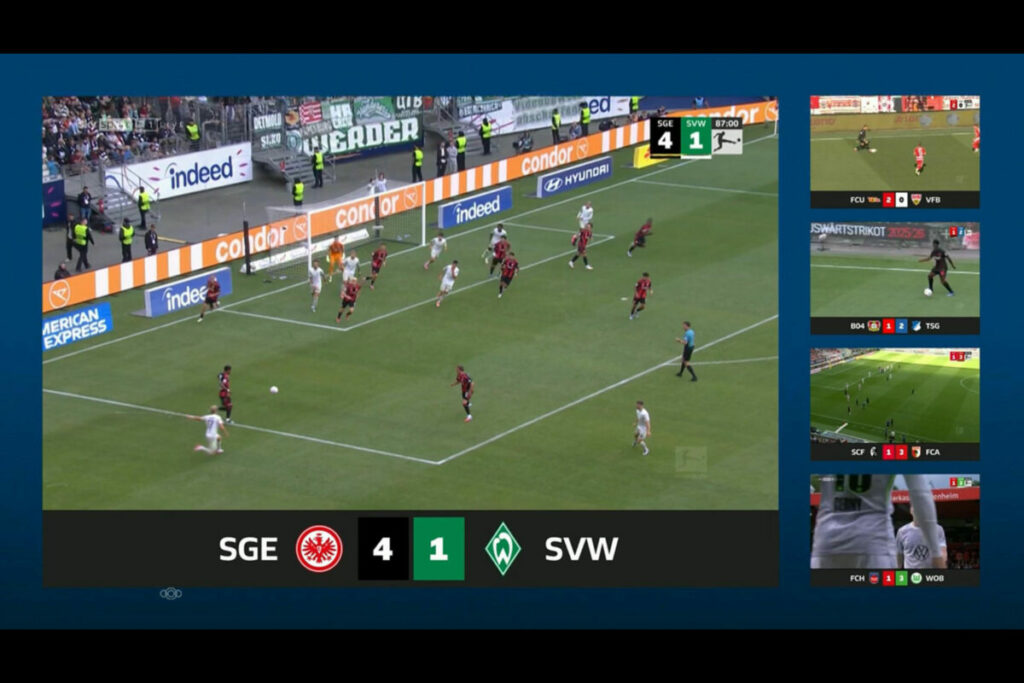 Ein Spiel im großen Bereich, die anderen vier rechts in klein daneben. Ein Wechsel ist möglich, jedoch nur auf den direkten Kanal und nicht im Split, wie die Partie zwischen den Hessen und dem SVW. Fünf Tore gab es dort, also nicht die schlechteste Wahl. Und dennoch lief noch nicht alles rund – oder zumindest so, wie sich es die Fans vorstellten. Die meisten von ihnen gingen davon aus, dass man mit der Fernbedienung die jeweilige Begegnung in die Mitte holen könne. Das ging nicht. Ein Minuspunkt? Die Alternative wäre sich das DAZN-Paket zu holen, dort hat man allerdings keine Einzelspiele. Für die Anhänger also eine Zwickmühle.