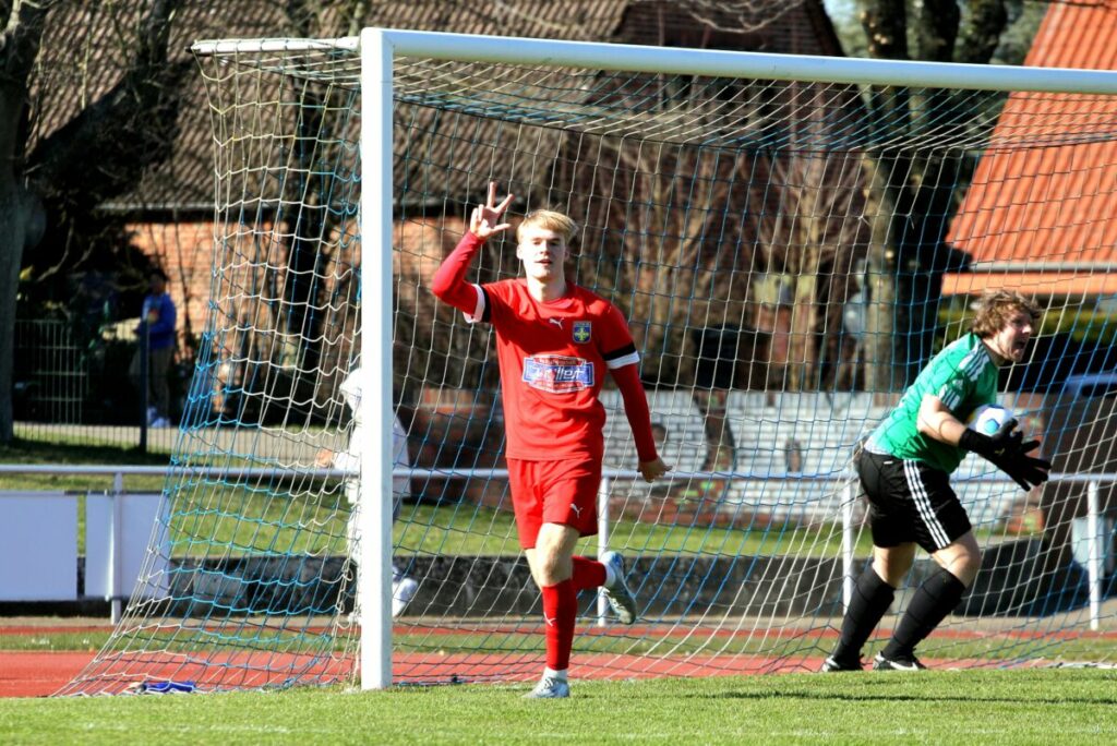 Nach 25 Minuten, kurz nach einer kleinen Druckphase der Gäste, kam Lensahn zu ihrer ersten Chance, doch „Turbo“ Ratje verpasste. Stattdessen näherte sich Eutin immer weiter an. Zum Beispiel nach einem schnell ausgeführten Freistoß von Sarnow, der Jakubenko sieht, doch dessen Hereingabe fand niemanden im Fünfmeterraum. Keine 60 Sekunden später brachte Morits Manzow das Leder von links in die Mitte, doch Uchneytz’ Kopfball war leichte Beute für den Torhüter. Es deutete sich die Führung des Tabellendritten an, doch es fehlten immer wieder wenige Zentimeter. Die Hausherren konnten sich glücklich schätzen, dass es noch 0:0 stand, doch kurz vor der Pause änderte sich dies. Über die rechte Seite spielten die Gäste gut über Rick Jacobsen und Schmidt aus. Letzterer brachte den Ball in die Mitte, wo Jorge Bruckmann (43.) zur Führung traf. Diese war zur Pause hochverdient, denn es war über weite Teile im ersten Durchgang ein Spiel auf ein Tor. Zur zweiten Hälfte nahm sich Lensahn einiges vor, doch dies wurde schnell zunichte gemacht. Im eigenen Strafraum stimmte die Kommunikation zwischen Torhüter und Verteidigern nicht, und so tauchte Bruckmann (54.) frei vorm Tor auf und erhöhte. Die Hausherren bekamen den Ball nicht raus, und so wurde es eine nochmals härtere Aufgabe. Für den TSV sprach zu diesem Zeitpunkt wirklich gar nichts mehr. Die Heimbilanz mit nur vier Treffern aus acht Spielen sowie der Spielverlauf machten keinen Mut. Chancen waren absolute Mangelware nach einer Stunde, denn einzig Thorben Ratje brachte nach 25 Minuten mal einen nennenswerten Schuss auf den Kasten von Niklas Boeck. Dieser hatte ansonsten so gut wie gar nichts zu tun. Zwar gab es im Laufe der zweiten Hälfte, als die Platzherren mutiger wurden, einige Annäherungen, doch gefährlich waren nur die wenigsten. Finn-Ole Ratje hatte dabei die wohl mit Abstand beste Chance, als er den Ball knapp am linken Pfosten vorbeischob. Auf der anderen Seite lag der Ball kurz darauf im Netz. Eine Ecke von Jannik Sarnow kam auf den ersten Pfosten, wo Genco behindert wurde, und Bruckmann (65.) drückte den Ball über die Linie. Wie bereits gegen Tensfeld schnürte der Außenspieler einen Dreierpack. Er war der Matchwinner und schraubte sein persönliches Saisontorkonto bereits auf neun hoch. Im Anschluss kam Lensahn zu weiteren Annäherungen, doch es blieb weiterhin nicht zwingend. Hinten hatten sie riesiges Glück, dass nach einer Flanke von Manzow Gutzeit in der Mitte das 4:0 verpasste. So war es „nur“ eine 0:3-Niederlage des Tabellenletzten, der nach dem Sieg in Lütjenburg einen enormen Dämpfer hinnehmen musste. Das war definitiv zu wenig, um die Klasse zu halten, und der Abstieg nähert sich. Sieben Punkte Rückstand sind es auf den 14. Platz.