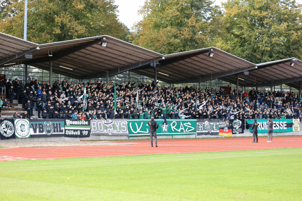Um 14.45 Uhr ging es dann doch los. Die VfB-Anhänger supporteten ihr Team, genauso wie die Fans der Hausherren. Es blieb friedlich und es kam zu keinen Ausschreitungen, selbst auf Pyro wurde verzichtet. Das bestätigte selbst der Polizeieinsatzleiter auf Nachfrage von HL-SPORTS noch während des Spiels. Selbst Stunden danach hieß es von der Polizeieinsatzleitstelle: „Das Spiel verlief ruhig, keine besonderen Vorkommnisse.“ In einem Online-Liveticker einer Lübecker Tageszeitung wurde zuerst behauptet, dass es vor dem Spiel zu gewalttätigen Auseinandersetzungen zwischen Gäste-Fans und Polizei gekommen sein soll. Der Polizeieinsatzleiter war über diese Aussage verwundert und sagte zu HL-SPORTS: „Glauben sie mir, davon wüsste ich.“ Diese Passage in dem Liveticker wurde später korrigiert.
