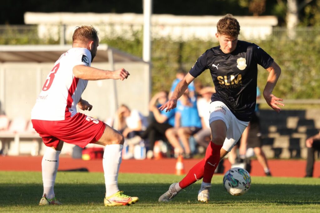 Lübeck – Das Stadtderby zwischen dem 1. FC Phönix Lübeck und VfB Lübeck endete mit einem überraschenden Erfolg für den Regionalligisten. Jedoch ganz so überraschend war der Sieg von Phönix gar nicht. Die Adlerträger sind in der 4. Liga seit fünf Spielen ungeschlagen und spielen in dieser Saison einen guten und attraktiven Offensivfußball. Auf der anderen Seite die Grün-Weißen, die zuletzt in der 3. Liga nicht gut aussahen in Ulm. Zusätzlich sprach der Spielberichtsbogen mit den Aufstellungen vor dem Spiel Bände. 14 Spieler fehlten beim VfB. Lediglich drei Feldspieler und ein Torwart saßen auf der Bank. Nur Morten Rüdiger und Manuel Farrona Pulido waren Einwechselspieler, die Teil des Ligakaders sind. Die besseren Chancen, die stärkere Spielanlage und die Spielfreude hatte die Mannschaft von Christiano Adigo, die sich in der regulären Spielzeit durch Tore von Vjekoslav Taritas (61.) und Leander Fritzsche (72.) belohnte. Den kurzen Schock in der 8. Minute der Nachspielzeit zum 2:2-Ausgleich überstanden die Kicker vom Flugplatz mit Bravour und gewannen dank eines überzeugenden Elfmeterschießens und einer herausragenden Leistung des Keepers Carl Leonhard, der die letzten beiden Schüsse hielt, mehr als verdient mit 6:4. Im Halbfinale des Landespokals wartet das nächste Derby, diesmal gegen den Eichholzer SV aus der Landesliga.