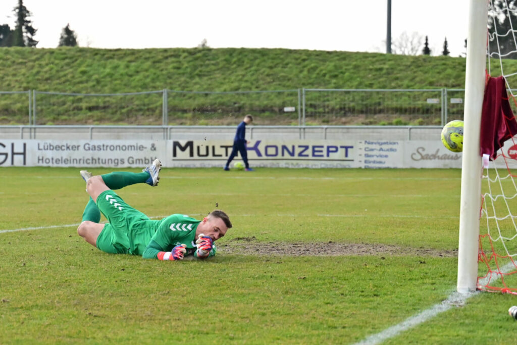 Norderstedts Torwart Lars Huxsohl muss sich geschlagen geben und das 1:0 von Phönix hinnehmen. Foto: Lobeca/Wolf Gebhardt